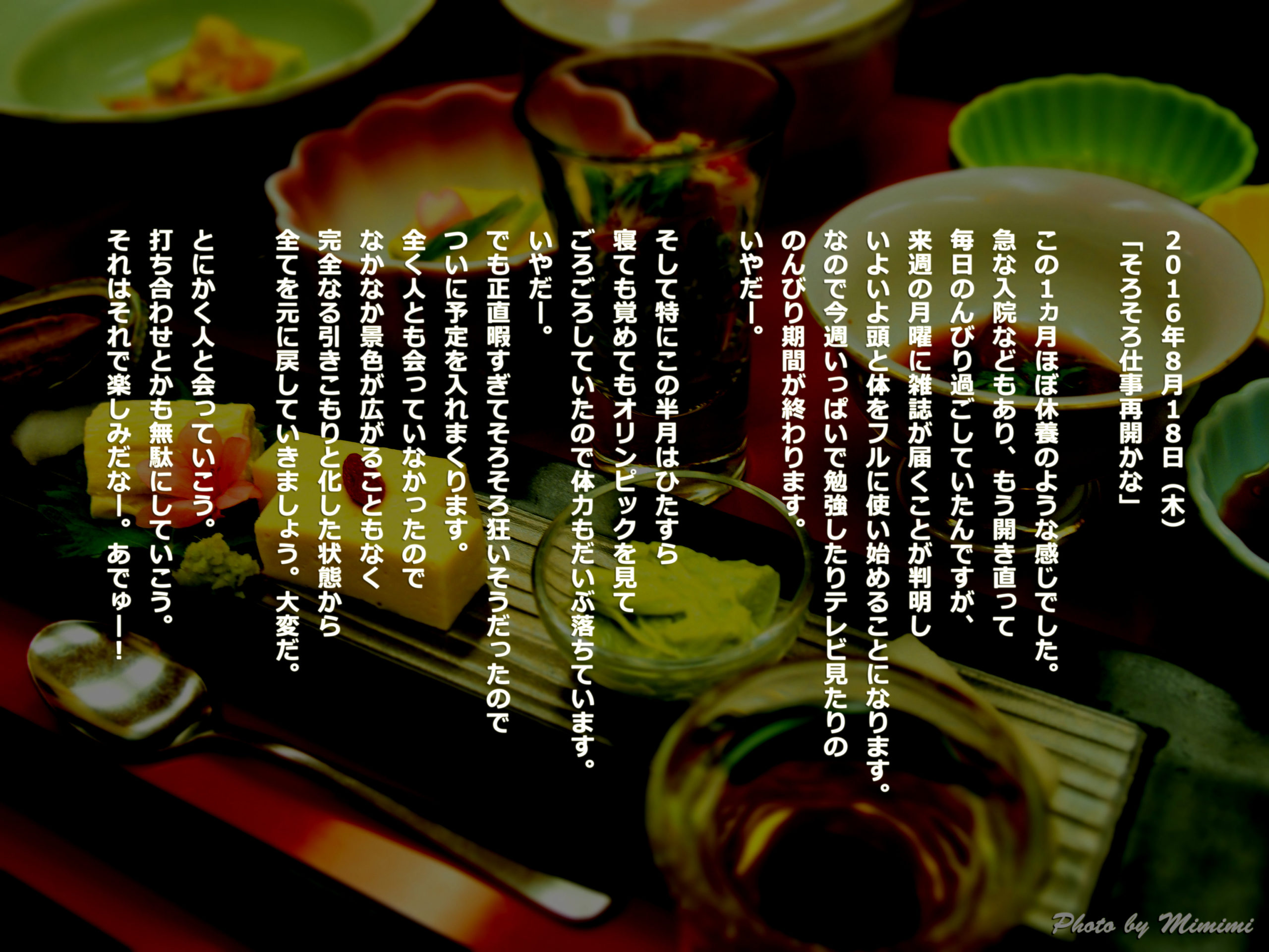 急な入院などもあり、もう開き直って毎日のんびり過ごしていたんですが、来週の月曜に雑誌が届くことが判明し