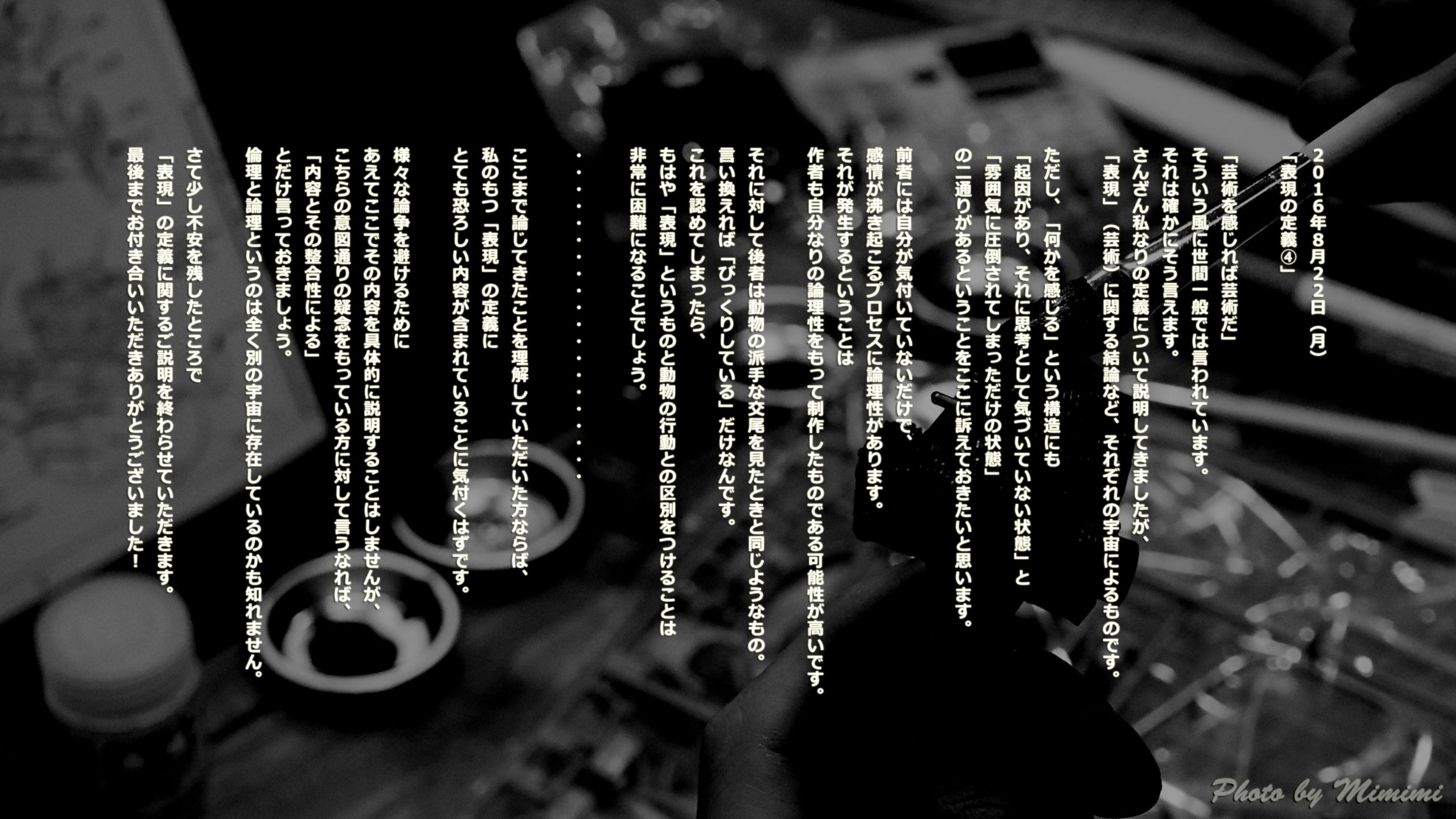 ここまで論じてきたことを理解していただいた方ならば、私のもつ「表現」の定義に