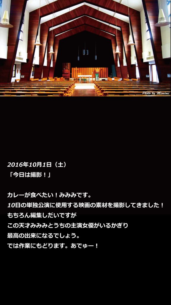 ※こちらは2016年に運営していたサイト『A Magazine of Melody Clocks』で連載したブログから移植した内容となります。 カレーが食べたい!みみみです。10日の単独公演に使用する映画の素材を撮影してきました! もちろん編集しだいですがこの天才みみみと...