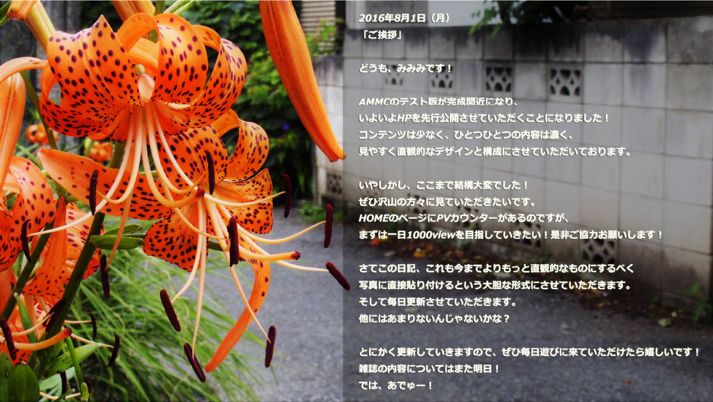 2016年8月1日(月)「ご挨拶」