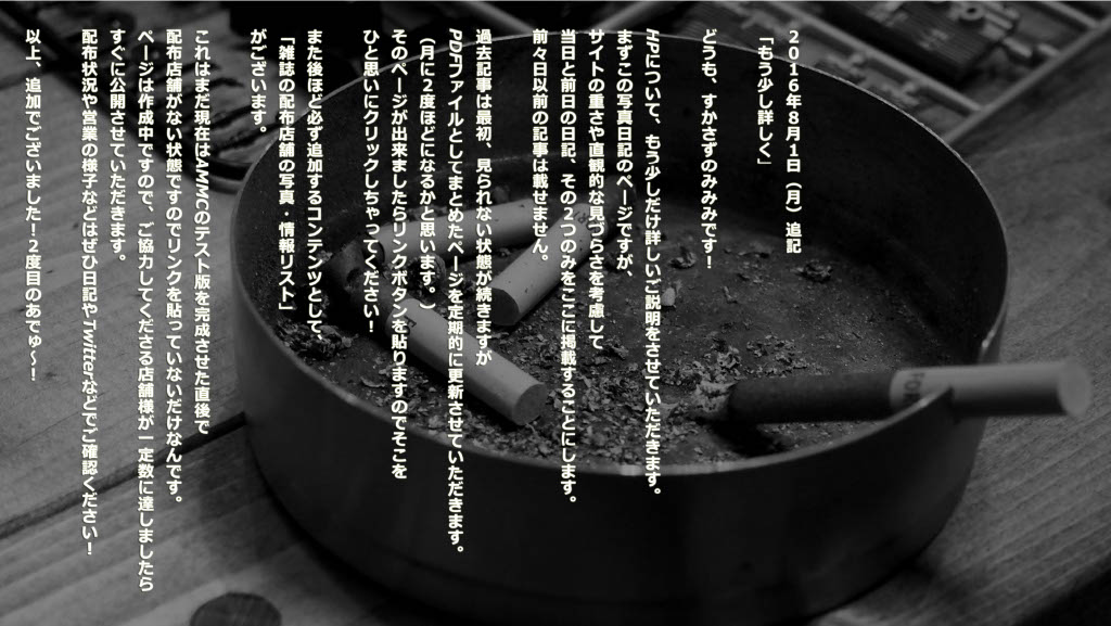 2016年に進行していたフリーペーパー制作活動において、設営したWebサイトで更新されていたブログを移植しました。計画の内容とともにぜひ隅々までご覧ください!川上サトシが音楽活動を停止する直前の足掻きが、ここにあります。