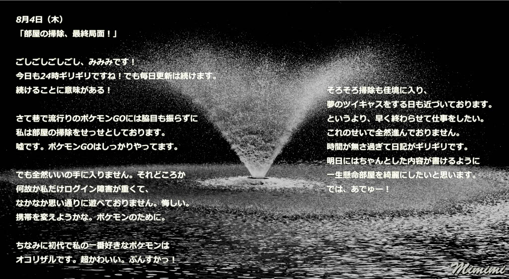 2016年8月3日(水)「はい早くも24時をまわってしまいました」