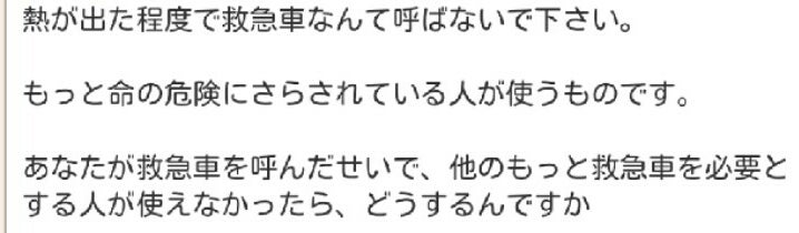 40度の熱が出て、救急車を呼ぶかどうか迷ってる人に送られた内容です。